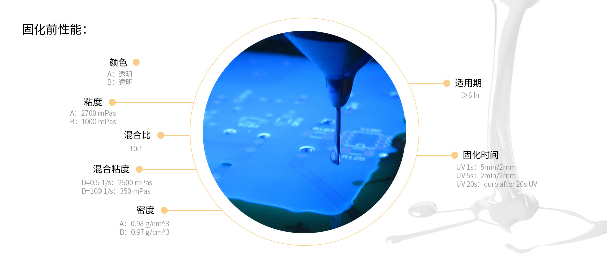 UV激活固化,固化速度快;